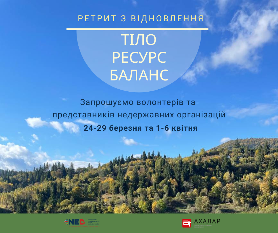 Центр АХАЛАР запрошує лідерів/працівників ГО, волонтерів взяти участь в ретриті у Карпатах «Тіло. Ресурс. Баланс». КОЛИ? 21-26 жовтня 2025. (Заїзд ранком 21 жовтня. Виїзд ввечері 26 жовтня.) ДЕ? м. Славське, Львівська область на базі Креативна резиденція МС 6. ДЛЯ КОГО? Для працівників ГО, волонтерів, які працюють в ГО та “хелперів”. Хто має необхідність в зниженні […]