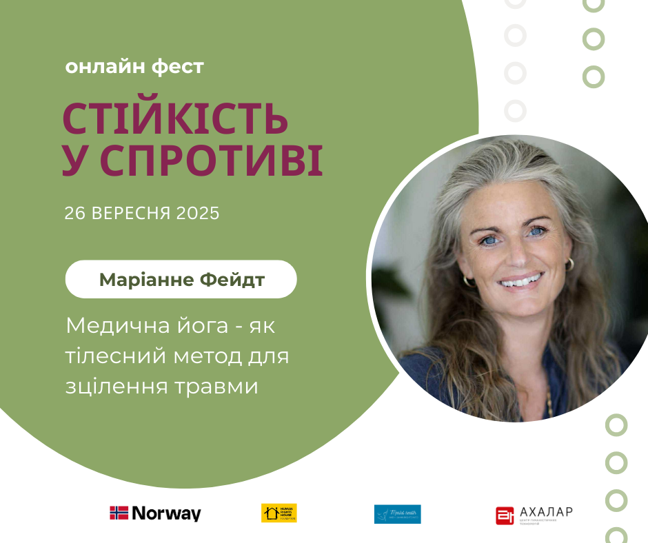 26 вересня відбудеться лекція «Медична йога як тілесно-орієнтований метод роботи з травмою та стресом» від Маріанне Фейдт. Маріанне Фейдт очолює Medisinsk Yoga Norge, де працює міждисциплінарна команда лікарів, психологів, фізіотерапевтів, акушерки та фахівців із травматерапії. Вона має кваліфікацію психотерапевтки, терапевтки у сфері стосунків і пар, а також коуча з комунікацій (Senior Practitioner, EMCC). Її професійна […]