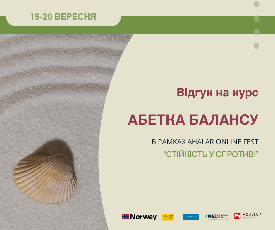 15 вересня в межах психо едукаційний онлайн-фесту «Стійкість у спротиві / Resilience in Resistance» розпочався курс «Абетка балансу» від тренерів Центру Ахалар – Вікторії Солонициної та Юрія Усовича. Цей курс створений для представників допомагаючих професій та громадського сектору, щоб підтримати їхній добробут, відновлення та внутрішню стійкість у часи високої напруги. Перше заняття стало знайомством із […]
